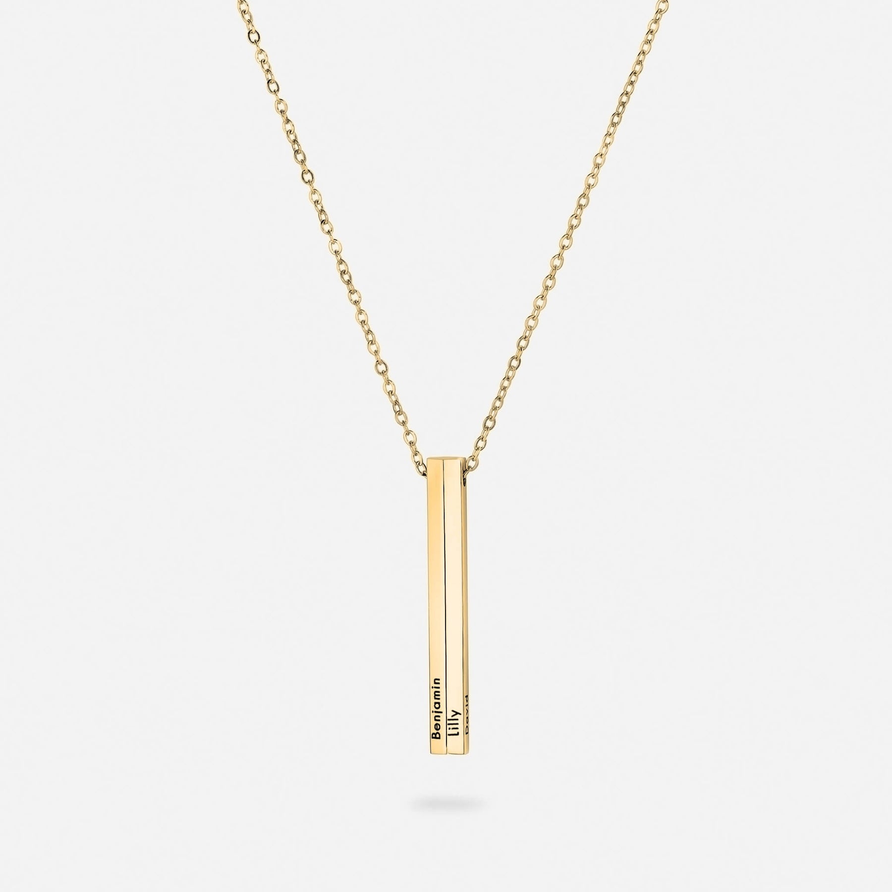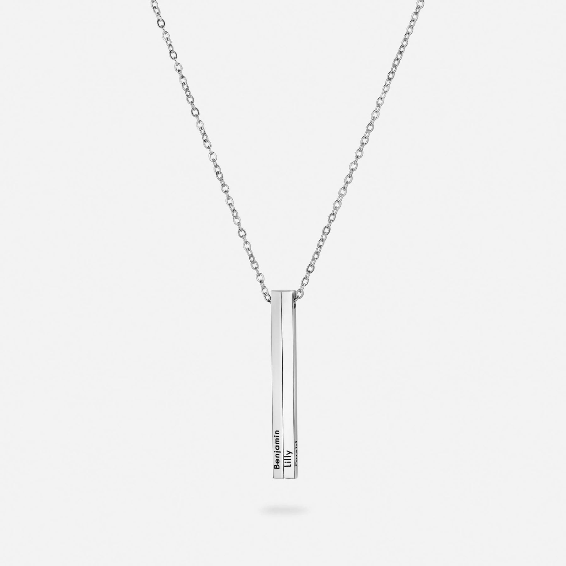 這款直款名字項鍊可在最多五個面上進行客製化刻字,包括名字、日期或具有深刻意涵的詞語 —— 象徵連結、忠誠與力量的永恆標誌。